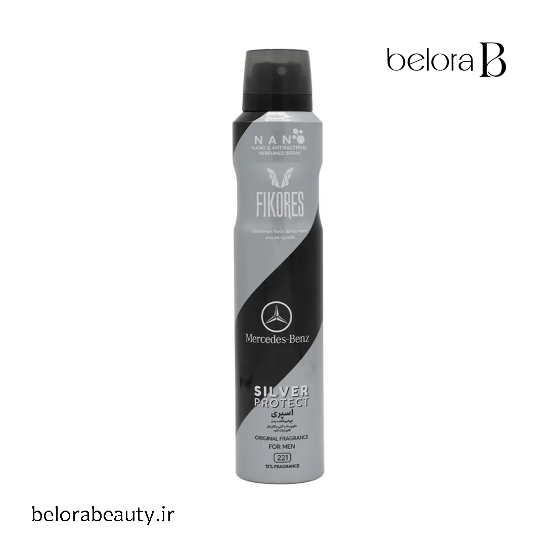نانو اسپری بدن مردانه مرسدس بنز فیکورس که با رایحه فریبنده و ماندگاری طولانی برجسته میشود. این اسپری بدن از تکنولوژی نانوذرات نقره برای مقابله با باکتریها و ویروسها استفاده میکند و قدرت ضدباکتریایی دارد. تأثیربخشی مضاعف و ارتباط با شخصیت و سبک فرد را با رایحۀ گیرا و جذاب آن تاکید میکند. همچنین، سازگاری با محیط زیست و استفاده از فرمولاسیون عطرساز معروف Olivier Cresp این محصول را به یک گزینه مناسب برای مردان مدرن تبدیل کرده است.